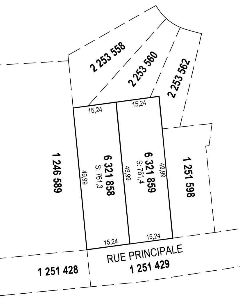 La description technique quant à elle, porte normalement sur une superficie regroupant plusieurs lots entiers du cadastre ou bien des portions/fractions de lots entiers et n’a généralement pas de lien avec des règlements de lotissement.